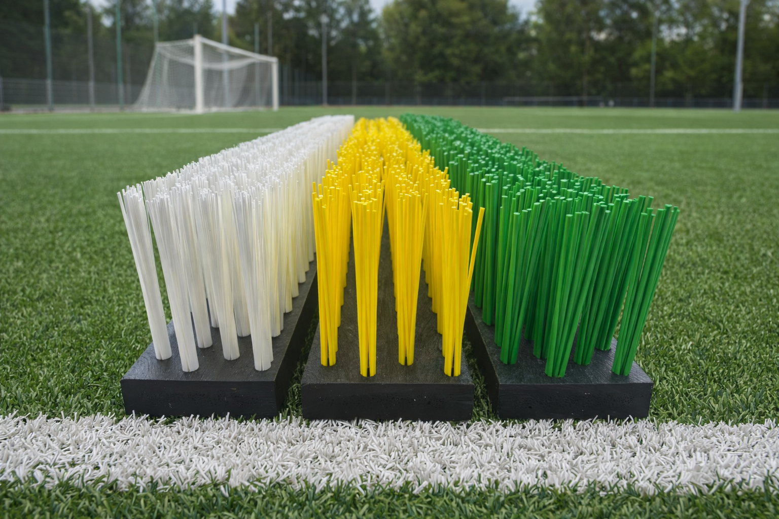 Unsere Bürsten sind für den praktischen Einsatz entwickelt. Sie verteilen Infill gleichmäßig, richten Kunstrasenfasern auf und entfernen Schmutz effektiv. Ohne den Rasen zu beschädigen. - Produktion in den Niederlanden (Hoogeveen)